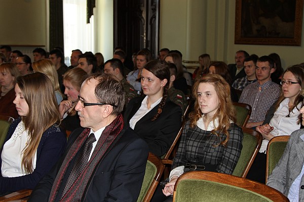 Wiceprezydent Jerzy Gwiżdż witając gości i uczestników konkursu podkreślił, że dzisiaj mamy obowiązek mówić o odwadze żołnierzy, których nazwano niezłomnymi.