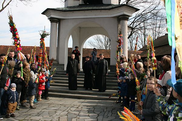 Po modlitwie ksiądz proboszcz Jerzy Jurkiewicz poświęcił przyniesione przez Sądeczan palmy.
