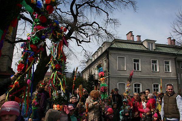 Następnie wszyscy przeszli do bazyliki, gdzie rozpoczęła się msza św. Po Eucharystii na placu odbył się konkurs palm. Tradycyjnie, najwyższe palmy, liczące w tym roku po 17,5 metra, wykonali Krystian i Karol Szkaradkowie. Można je podziwiać w bazylice kolegiackiej św. Małgorzaty.