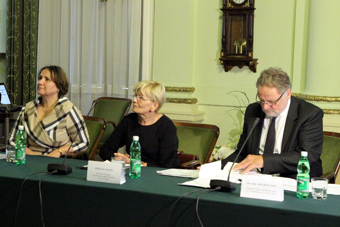 Podczas posiedzenia wykład „System opieki geriatrycznej w Małopolsce – stan obecny i potrzeby” przedstawiła doc. dr hab. Barbara Gryglewska – Katedra Chorób Wewnętrznych i Gerontologii Collegium Medium Uniwersytetu Jagiellońskiego w Krakowie. W swojej prezentacji przedstawiła najważniejsze wskaźniki dotyczące geriatrii w Polsce oraz w Województwie Małopolskim. Obecnie w Województwie przypada 1,7 geriatrów na 100 tys. mieszkańców co jest minimalnym wynikiem w Unii Europejskiej. Na oddziałach geriatrycznych przypada 4,7 łóżka na 100 tys. mieszkańców. W krajach Unii Europejskiej wskaźnik ten waha się od 10 -75 łóżek na 100 tys. Docent dr hab. Barbara Gryglewska w swoim wystąpieniu zwróciła uwagę, iż liczba lekarzy geriatrów zbliża się do wskaźników Unii Europejskiej, jednak większość lekarzy tej specjalności pracuje na terenie miasta Krakowa. Pani docent podkreśliła, iż liczba oddziałów geriatrycznych jest zdecydowanie niewystarczająca. Brak większej liczby oddziałów uniemożliwia zwiększenie liczby miejsc akredytowanych do prowadzenia specjalizacji z geriatrii. Kolejnym problem na jaki zwróciła uwagę to niedostateczny dostęp do specjalistycznych porad geriatrycznych, których poza Krakowem brakuje.