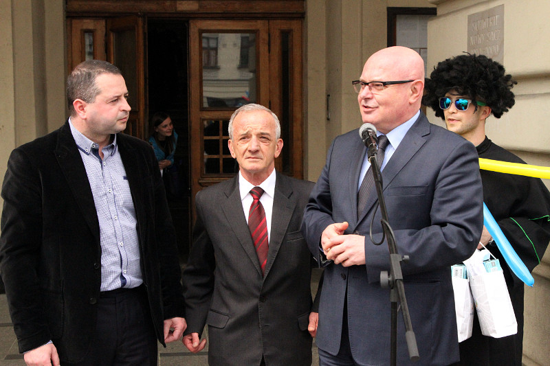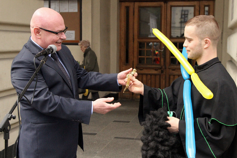 Następnie władze uczelni, na czele z prorektorem dr Januszem Paterem i rektorem elektem Mariuszem Cygnarem, wybrali studentów, którzy przygotowali najciekawsze przebrania na Juwenalia. Rywalizację wygrał Kuba, który na chwilę „zamienił” się w fotoradar.