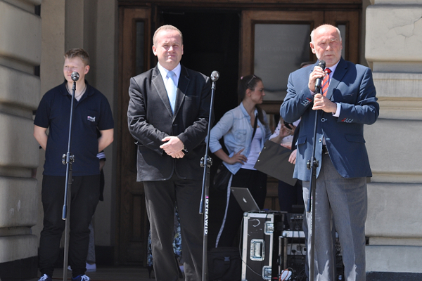 Najmłodszym próbowali dorównać dorośli, samorządowcy i parlamentarzyści. Wiceprezydent Jerzy Gwiżdż życzył dzieciom z okazji ich święta wiele radości, uśmiechu i samych słonecznych dni. Stanisław Szarek Kawaler Orderu Uśmiechu zachęcał najmłodszych do zabawy. Na wszystkich, którzy przyłączyli się do akcji, której patronował Prezydent Nowego Sącza Ryszard Nowak, czekały słodkie niespodzianki oraz pokazy grupy wokalnej Young Voice i zespołu Tańca Nowoczesnego „Katharsis” z MOK.