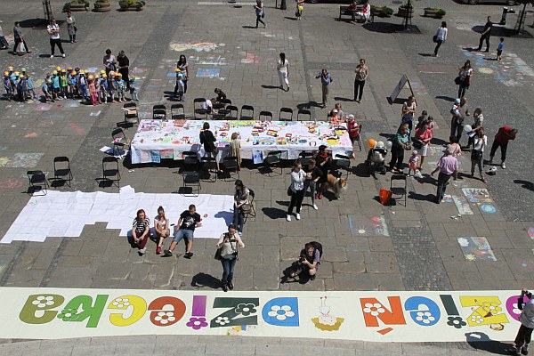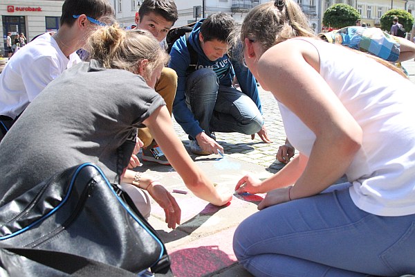 Po raz kolejny najmłodsi wraz z rodzicami i opiekunami pokolorowali sądecki Rynek. Każdy mógł kolorową kredą namalować to co chciał. Były krajobrazy, portrety,a nawet plansze do gry „w klasy”. Zabawa była wyjątkowa tym bardziej, że w tym roku równocześnie rysowali nasi przyjaciele z Chorzowa oraz Zakopanego.