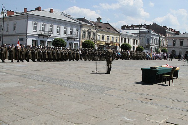 Po mszy św. na płycie rynku przed sądeckim ratuszem odbył się apel zgodnie z ceremoniałem wojskowym. Wręczono poświęcony wcześniej sztandar.