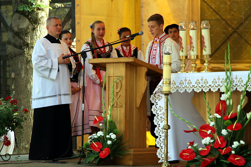 Uroczystą mszą świętą na Placu Kolegiackim przy Bazylice św. Małgorzaty zainaugurowany został 23. Międzynarodowy Festiwal Dziecięcych Zespołów Regionalnych "Święto Dzieci Gór". Zwracając się do wszystkich gości ks. dr Jerzy Jurkiewicz, Prepozyt Kapituły Kolegiackiej, podkreślił, że w sposób szczególny należy powitać uczestniczące w festiwalu dzieci, bo to one są najważniejsze. Mszę św. celebrował i wygłosił homilię ks. dr Józef Kowalik, kapelan Festiwalu.