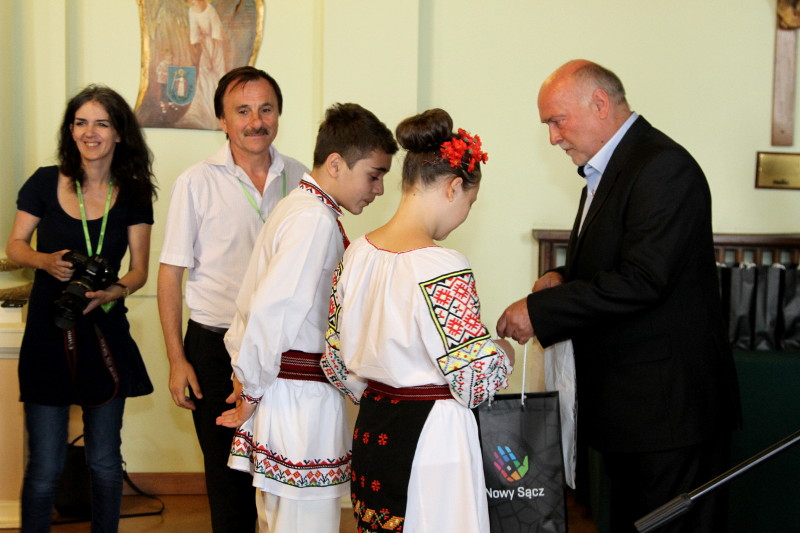 Zaraz po eucharystii w sądeckim ratuszu odbyło się spotkanie przedstawicieli wszystkich zespołów biorących udział w Festiwalu z władzami miasta. Wiceprezydent Jerzy Gwiżdż dziękując za organizację tego niezwykle ważnego dla Nowego Sącza wydarzenia, przywitał osobiście delegacje regionalne ze wszystkich krajów.