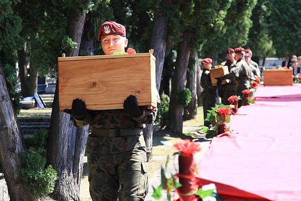 - Dzisiaj po wielu latach przygotowań chowamy szczątki 30 żołnierzy, którzy zginęli na terenie Małopolski. Byli to młodzi mężczyźni, którzy w dużej części są bezimienni zginęli idąc na zachód, walcząc z wojskami hitlerowskimi. Taki mieli rozkaz i ten rozkaz wykonali do końca. Kulturę narodu mierzy się szacunkiem tego narodu do drugiego człowieka, ktoś kto nie szanuje innych sprowadza nieszczęście, ten kto szanuje najtrudniejsze problemy potrafi wcześniej czy później rozwiązać. W tym miejscu w kwaterze wojskowej spoczną żołnierze, którzy oddali życie- mówił wojewoda małopolski Jerzy Miller.