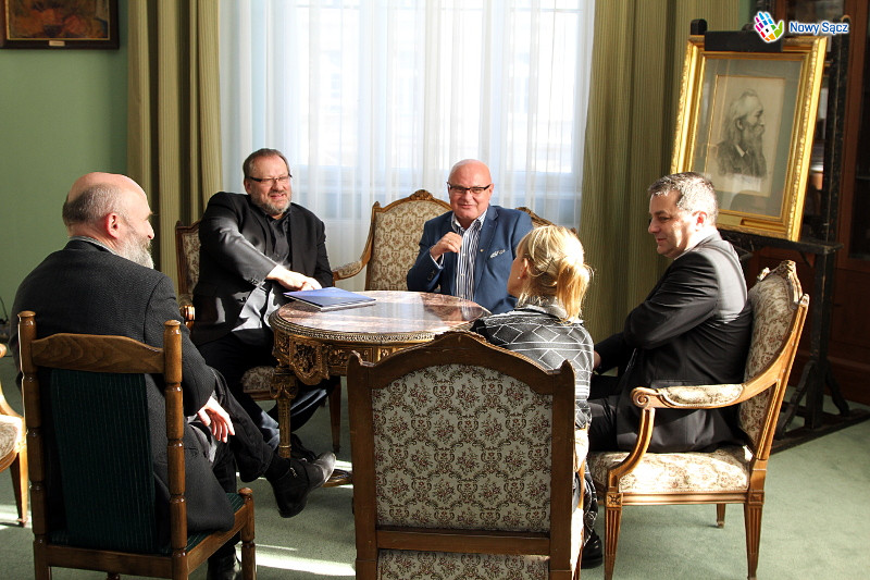 W spotkaniu, podczas którego podpisana została umowy o współpracy między Nowym Sączem i Akademią Sztuk Pięknych w Krakowie, wzięli również udział: Dziekan Wydziału Architektury Wnętrz dr hab. Beata Gibała-Kapecka, prof. ASP, Prorektor ds. Studenckich dr hab. Jan Tutaj, prof. ASP, a także dyrektor Wydziału Architektury i Budownictwa Urzędu Miasta Nowego Sącza Mirosław Trzupek.
