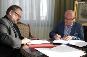 Prezydent Nowego Sącza Ryszard Nowak i rektor Akademii Sztuk Pięknych w Krakowie Jego Magnificencja prof. Stanisław Tabisz, podpisali porozumienie o współpracy w zakresie projektowania wnętrz w budynkach użytkowych, administracyjno-biurowych i zabytkowych. Spotkanie odbyło się w siedzibie Akademii Sztuk Pięknych, w niecodziennej scenerii obrazów największych polskich mistrzów malarstwa, rektorów uczelni oraz rekwizytów Jana Matejki.