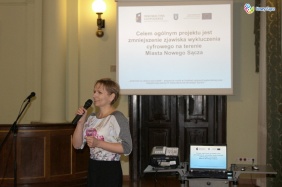 Na zakończenie Dyrektor Wydziału Przedsiębiorczości i Funduszy Zewnętrznych Alina Marek podsumowała realizację projektu, którego głównym celem było zmniejszenie zjawiska wykluczenia cyfrowego na terenie Miasta Nowego Sącza, poprzez dostarczenie Internetu do gospodarstw domowych oraz realizację działań koordynacyjnych polegających na zwiększeniu ogólnodostępnych miejsc z dostępem do Internetu.