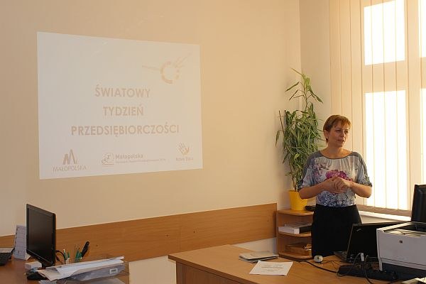 Podczas spotkania uczniowie poznali ideę Światowego Tygodnia Przedsiębiorczości, zapoznali się z działaniami jakie podejmują władze Nowego Sącza, aby stworzyć przyjazny klimat dla powstawania i rozwoju firm w mieście. Zaprezentowano również projekty prowadzone przez wydział, a skierowane do uczniów sądeckich szkół. Projekty te mają na celu, poprzez dobrą zabawę i ciekawe spotkania, kształtować aktywną i przedsiębiorczą postawę wśród młodych ludzi. Dyrektor wydziału poinformowała również o projekcie „Włącz myślenie. Postaw na przedsiębiorczość.”, którego rozpoczęcie kolejnej edycji planowane jest jeszcze tym roku. Podczas spotkania uczniowie dowiedzieli się również, w czym przedsiębiorcom – pracodawcom oraz osobom zakładającym firmę może pomóc urząd pracy. Doradca zawodowy z Sądeckiego Urzędu Pracy zachęcała młodzież w przyszłości, kiedy już będą prowadzili własną firmę, do korzystania z różnorodnych form wsparcia pozostających w ofercie urzędu pracy.