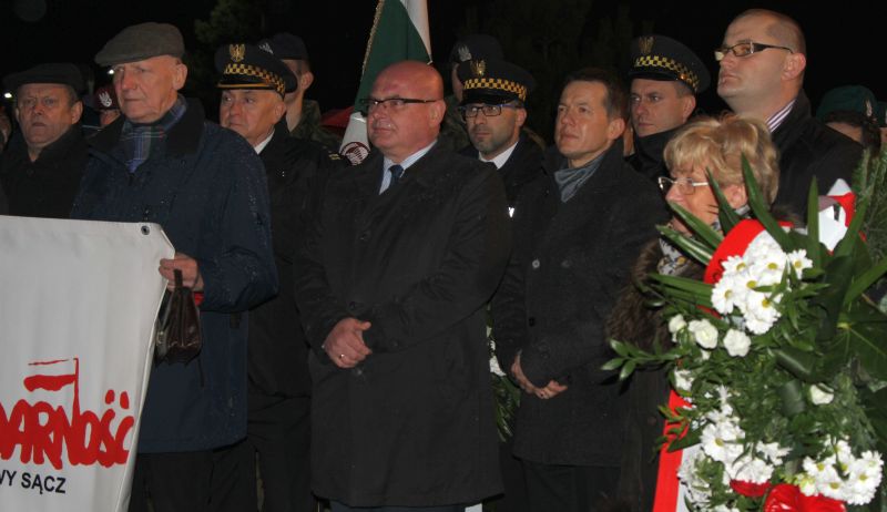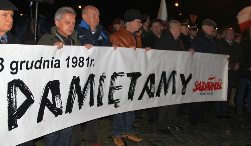 Po eucharystii Sądeczanie w asyście licznych pocztów sztandarowych przeszli pod pomnik Solidarności. Tam szef sądecko-gorlickiego oddziału NSZZ "Solidarność" Krzysztof Kotowicz przypomniał czasy stanu wojennego, grudniową noc 1981 i podkreślił, że wprowadzenie przez gen. Wojciecha Jaruzelskiego stanu wojennego w Polsce to rozpoczęcie wojny, która miała na celu zdusić rozpoczęte przemiany polityczne jak i gospodarcze w kraju.