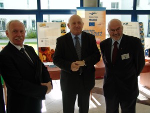 Prezydent Kwaśniewski w rozmowie z prezydentem Wiktorem i rektorem Pawłowskim