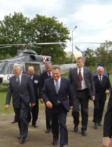 9 września: Tuż po przylocie helikoptera – marszałek Sejmu Józef Oleksy z małżonką Marią oraz prezydentem Nowego Sącza
