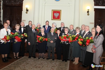 - To dla mnie wielki zaszczyt, że mogę przewodniczyć dzisiaj uroczystości jubileuszu Państwa pożycia małżeńskiego. Te jubileusze są obchodzone w polskiej tradycji w sposób szczególnie uroczysty, a Państwa obecność tutaj dowodzi, że małżeństwo oparte na wzajemnym zaufaniu, na miłości i wspólnym dzieleniu trosk, ale również radości i sukcesów, może być i jest wzorem dla innych. Jesteście przez to ambasadorami miłości, a to szczególnie ważne w dzisiejszych czasach, kiedy taki przykład dla młodych pokoleń jest bardzo potrzebny. Bardzo Państwu za to wszystko dziękuję i niech tym wyjątkowym dowodem uznania będą pamiątkowe medale przyznane Państwu przez Prezydenta Rzeczpospolitej Polskiej - powiedział do Jubilatów wiceprezydent Wojciech Piech, który wręczył również parom, obchodzącym Złote, Szmaragdowe i Diamentowe Gody, okolicznościowe upominki wraz z gratulacjami.