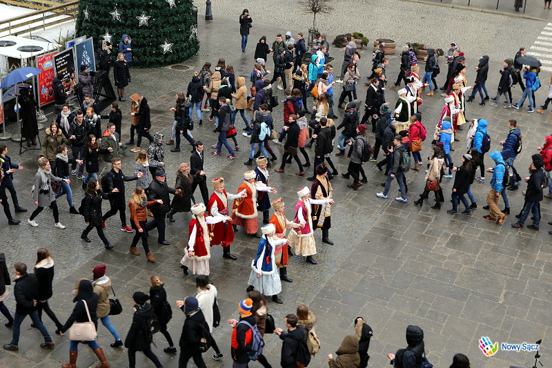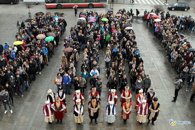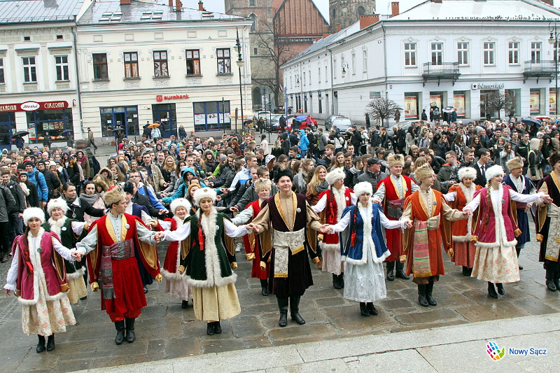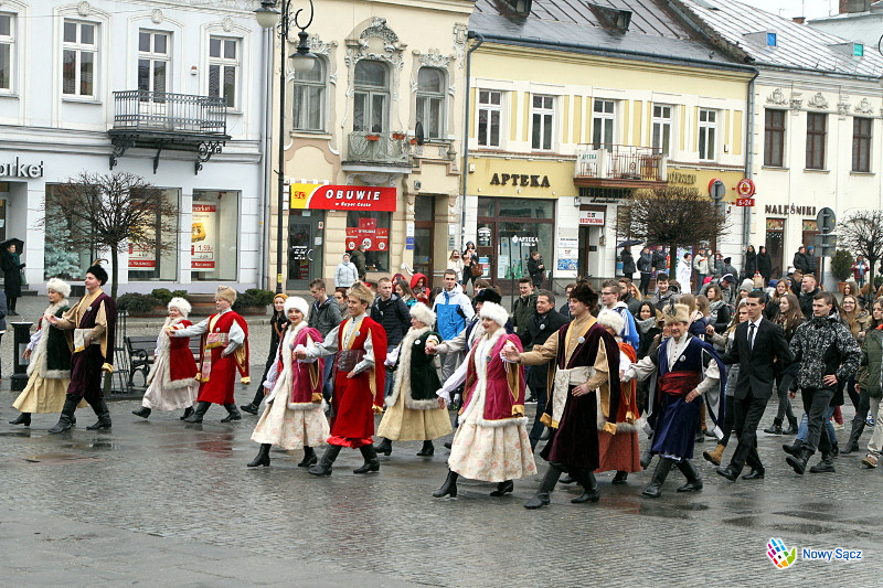 Po raz dziewiąty sądeccy maturzyści spotykali się przed miejskim ratuszem, aby zatańczyć tradycyjnego Poloneza. Wszystko rozpoczęło sie od słów "Poloneza czas zacząć", a korowód blisko 1400 maturzystów ruszył na czele z członkmi Zespołu Regionalnego "Sądeczanie" w stylizowanych strojach. W pierwszych parach zatańczyli również przedstawiciele władz Nowego Sącza: przewodnicząca Rady Miasta Bożena Jawor i wiceprezydenci Jerzy Gwiżdż oraz Wojciech Piech.
