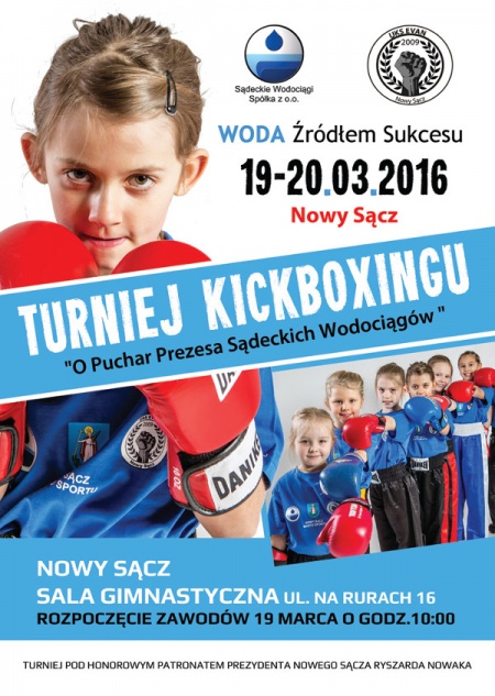 W dniach 19-20 marca na hali sportowej MOSiR przy ul. Na Rurach, odbędzie się Turnieju Kickboxingu o Puchar Prezesa Sądeckich Wodociągów. Rozpoczęcie rywalizacji odbędzie się w sobotę (19 marca) o godz. 10:00. Patronat honorowy nad wydarzeniem objął Prezydent Nowego Sącza Ryszard Nowak.