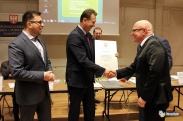Prezydent Ryszard Nowak odebrał dzisiaj wyróżnienie za budowę Obwodnicy Północnej z nowym mostem na Dunajcu w ramach, organizowanego przez Stowarzyszenie Gmin i Powiatów Małopolski, Konkursu "Najlepsze Przedsięwzięcie Roku 2015 w Małopolsce - LIDER MAŁOPOLSKI". Gratulacje Prezydentowi Nowego Sącza złożyli: Wiceminister Skarbu Państwa Filip Grzegorczyk, Marszałek Województwa Małopolskiego Jacek Krupa, rektor Uniwersytetu Jagiellońskiego prof. dr hab. med. Wojciech Nowak oraz przewodniczący Stowarzyszenia Gmin i Powiatów Małopolski Kazimierz Barczyk. W spotkaniu wziął również udział ks. Jan Kabziński, prezes Centrum Jana Pawła II, gdzie odbyło się podsumowanie Konkursu.