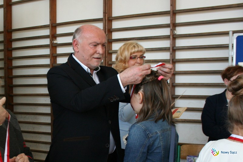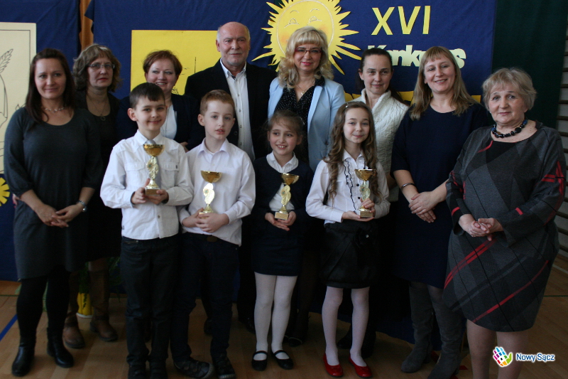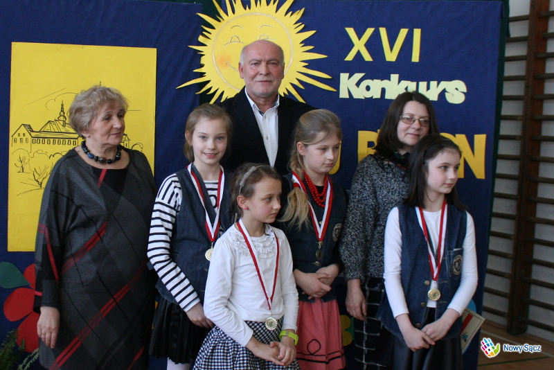 Honorowy patronat nad konkursem sprawował Zastępca Prezydenta Miasta Nowego Sącza – Jerzy Gwiżdż, który wręczył uczestnikom puchary, medale pamiątkowe oraz słodycze - Chciałbym podkreślić, że jest to piękny konkurs, ponieważ jest to konkurs o naszym regionie, o naszej małej ojczyźnie, o naszym mieście Nowym Sączu. Cieszę się, że tyle szkół w tym roku wzięło w nim udział, bo jest to taki konkurs, w którym nie jest najważniejsze to, żeby wygrać, a najważniejsze jest to, aby na nim po prostu być, aby o swoim mieście opowiedzieć, narysować i pokazać, że jest ono naprawdę piękne. Bardzo dziękuję, że szkoła obdarzyła mnie honorowym patronatem nad tym konkursem, który uważam za bardzo ważne wydarzenie organizowane w naszym mieście kierowane do dzieci. Wiceprezydent złożył także zebranym życzenia z okazji zbliżających się Świąt Wielkanocnych.
