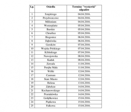 Jeszcze do 15 kwietnia można skorzystać z tzw. wiosennej "wystawki" w ramach zbiórki odpadów wielkogabarytowych oraz zużytego sprzętu elektrycznego i elektronicznego. Odpady należy wystawiać do godziny 8:00 przed posesje. Poniżej informacja na jakich osiedlach jeszcze będzie odbywać się zbiórka odpadów.