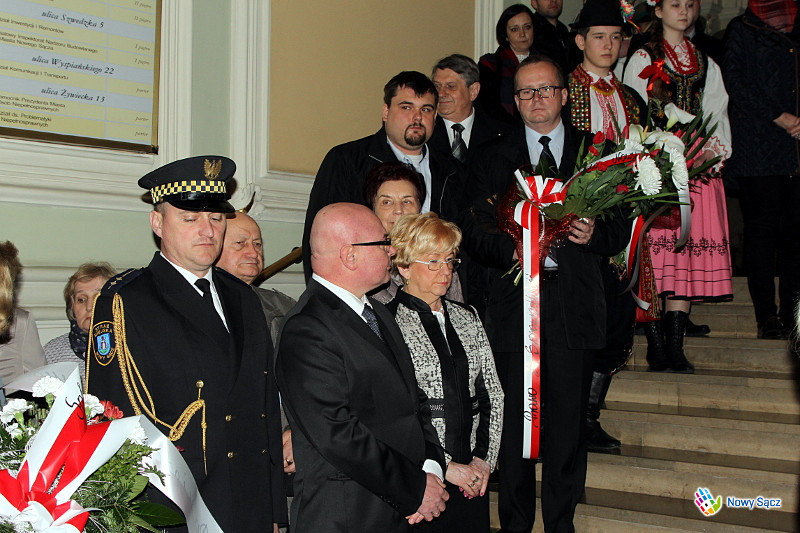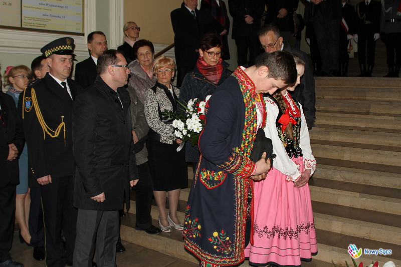 Po Eucharystii władze miasta i powiatu, delegacje sądeckich parlamentarzystów, kombatantów, Sybiraków oraz przedstawiciele służb mundurowych złożyły wiązanki kwiatów najpierw przed Tablicami Katyńskimi, a następnie po przejściu do sądeckiego ratusza, pod tablicami upamiętniającymi Honorowych Obywateli Miasta Nowego Sącza, Prezydenta RP Lecha Kaczyńskiego i Prezydenta RP na uchodźstwie Ryszarda Kaczorowskiego, którzy zginęli w katastrofie smoleńskiej. Ich fotografie stanęły też przed wejściem do ratusza wraz z tablicami, na których znalazły się nazwiska wszystkich 96 ofiar katastrofy samolotu prezydenckiego pod Smoleńskiem.