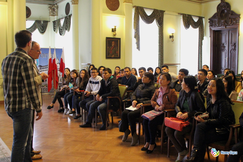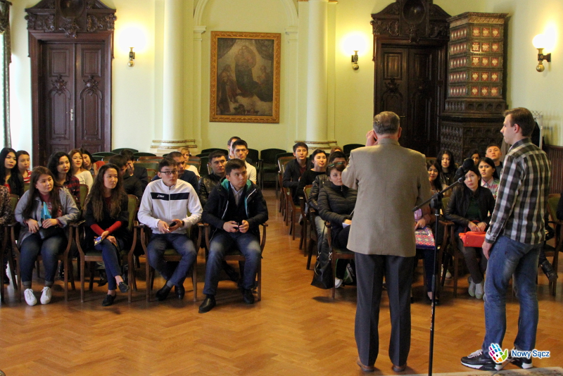 We wtorek 12 kwietnia w sali reprezentacyjnej sądeckiego ratusza odbyło się spotkanie studentów uczelni Kazakh National Agrarian University z Jerzym Leśniakiem, który wprowadził gości Wyższej Szkoły Biznesu - National-Louis University w historię, tradycję i zwyczaje Nowego Sącza.