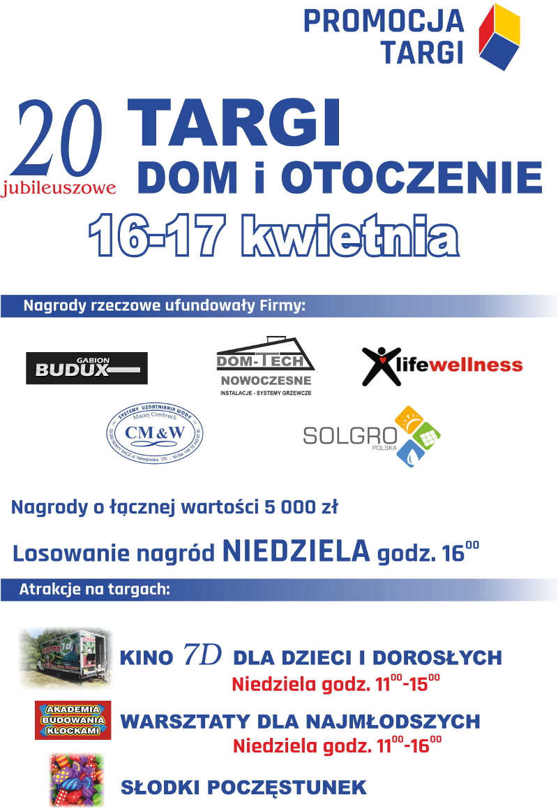 Już w najbliższy weekend 16-17 kwietnia w Hali Sportowej MOSiR, przy ul. Nadbrzeżnej, pod honorowym patronatem Prezydenta Miasta Nowego Sącza Ryszarda Nowaka, odbędą się jubileuszowe obchody XX Sądeckich Targów Dom i Otoczenie. Podczas targów zaprezentują się firmy budowlane z Nowego Sącza i okolic. Wśród zaplanowanych przez organizatorów atrakcji znalazły się kino 7D dla dzieci i dorosłych, warsztaty dla najmłodszych oraz słodki poczęstunek.