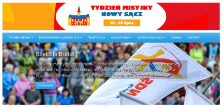 Wraz z otwarciem okręgowego biura Światowych Dni Młodzieży w Nowym Sączu ruszyła strona internetowa, na której można znaleźć niezbędne informacje dotyczące Światowych Dni Młodzieży w naszym mieście, a także wyjazdu do Krakowa na spotkanie z Papieżem Franciszkiem. Strona działająca pod adresem www.sdm.nowysacz.pl, zawiera także informacje o Nowym Sączu i prezentuje najciekawsze miejsca, które w dniach 20-25 lipca będą mogli odwiedzać pielgrzymi z różnych stron świata.