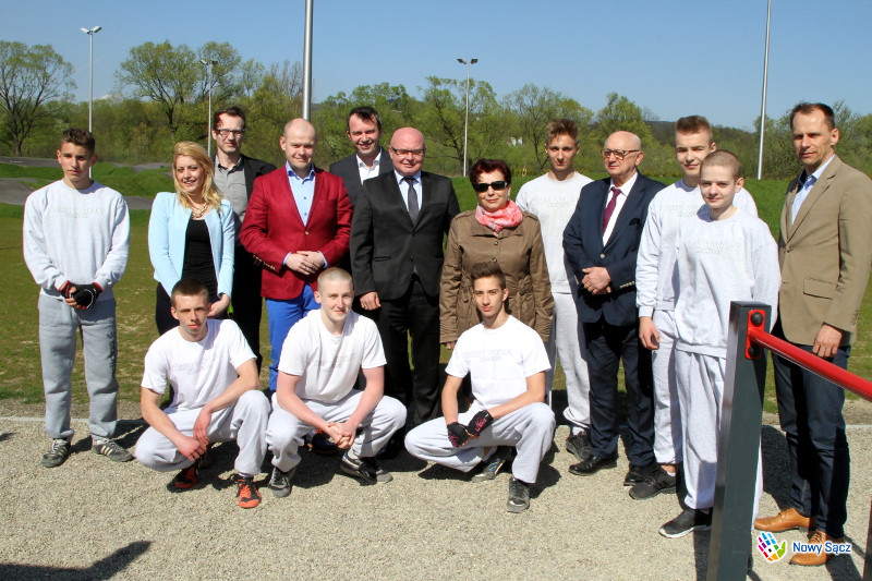Prezydent Ryszard Nowak podczas wizyty na sądeckim pumptracku otworzył nowy sezon dla użytkowników rowerów oraz osób ćwiczących na flow parku. Obejrzał również pokaz przygotowany przez członków grupy gimnastycznej Berz Elite, która na co dzień korzysta z urządzeń do street workoutu.