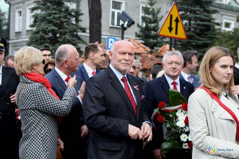 Kwiaty pod pomnikiem Stanisława Małachowskiego złożyli m.in. Wiceminister Finansów Wiesław Janczyk i poseł Józef Leśniak, Zastępcy Prezydenta Miasta Nowego Sącza Jerzy Gwiżdż i Wojciech Piech, przedstawiciele Rady Miasta Nowego Sącza wraz z przewodniczącą Bożeną Jawor, Starosta Powiatu Nowosądeckiego Marek Pławiak, Członek Zarządu Województwa Małopolskiego Leszek Zegzda, przewodniczący Zarządu Miejskiego Prawa i Sprawiedliwości Leszek Langer, przedstawiciele organizacji kombatanckich i służb mundurowych, a także delegacje NSZZ Solidarność oraz Gazety Polskiej. Wydarzenie zakończyło się występem okolicznościowym Orkiestry Reprezentacyjnej Straży Granicznej w Nowym Sączu.