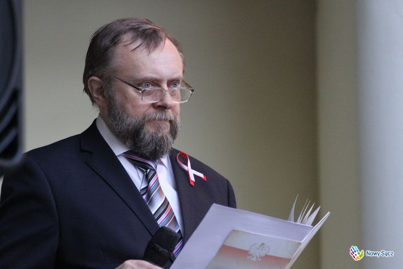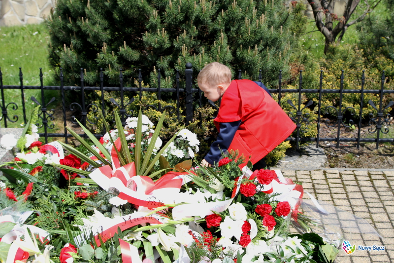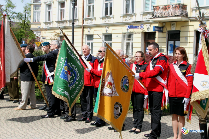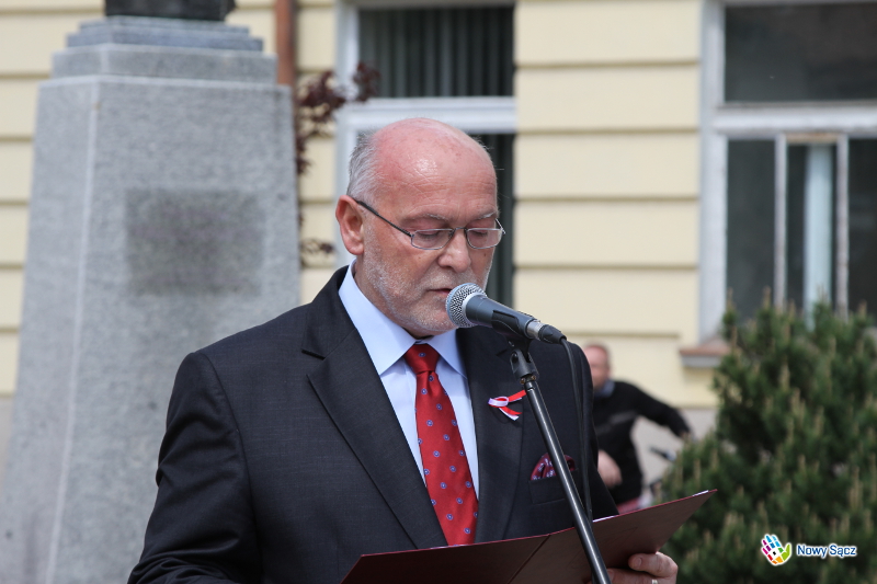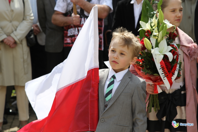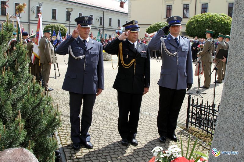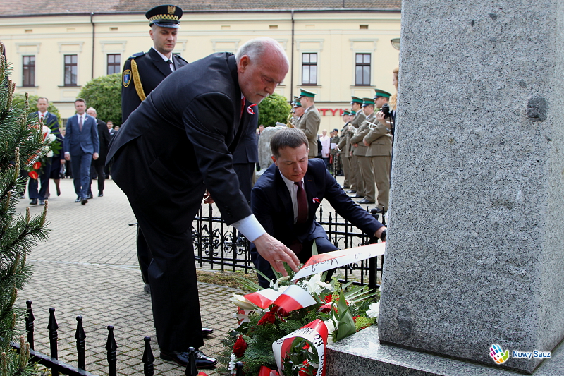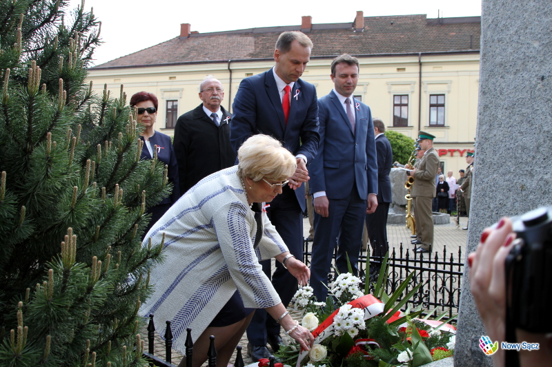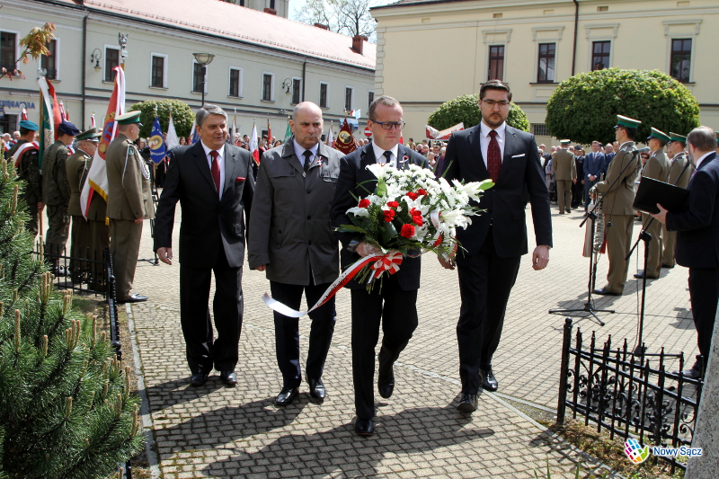W swoim przemówieniu Zastępca Prezydenta Nowego Sącza Jerzy Gwiżdż podkreślił: - Od wielu lat, corocznie, spotykamy się 3 maja wspominając ważne wydarzenie z naszej narodowej przeszłości, pamiętając słowa kardynała Stefana Wyszyńskiego, że „naród, który odcina się od historii, który wychowuje młode pokolenie bez powiązań historycznych to naród renegatów. Taki naród skazuje się dobrowolnie na śmierć, podcina korzenie własnego istnienia”. Mając na uwadze tą mocną przestrogę kardynała tysiąclecia, spotykamy się także dzisiaj, w 225 rocznicę uchwalenia ustawy zasadniczej zwanej Konstytucją 3 Maja. Zastępca Prezydenta zauważył także, że "w kalendarzu najjaśniejszych kart naszej historii przyjęcie przez Sejm Czteroletni Ustawy Rządowej, wprowadzającej w Polsce nowy, ale co ważniejsze, nowoczesny ustrój państwowy i prawny, zajmuje znaczącą pozycję". Wiceprezydent powiedział także, że "Konstytucja 3 maja, jako historyczne i patriotyczne dziedzictwo po światłych naszych poprzednikach wciąż prowokuje i każe stawać sobie aktualne pytania o nasze dzisiaj, nasze pojmowanie honoru, dobra ojczyzny, o nasz wkład w jej pomyślność. Odpowiedzi dają nam wielcy Polacy: poeta i mąż stanu. Norwid pisał: „Ojczyzna to wielki – zbiorowy – obowiązek”, a Wincenty Witos dodawał: „Kiedy nie było Polski – dążyć do Niej, gdy przyszła – pracować dla Niej, a gdy jest w potrzebie – bronić Jej.” Kończąc swoje przemówienie Jerzy Gwiżdż w dniu 225-lecia uchwalenia drugiej w Europie ustawy zasadniczej przytoczył słowa profesora Henryka Samsonowicza: „Konstytucja 3 Maja stanowi ważny element pamięci zbiorowej, bez której żadna polska wspólnota istnieć nie może”.