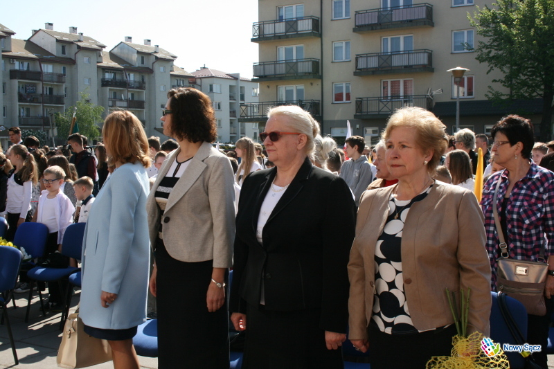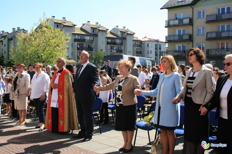 Przed szkołą utworzył się chór, który zaśpiewał między innymi Hymn „Błogosławieni Miłosierni”, a parafialni animatorzy zwrócili się do swoich rówieśników z entuzjastycznym zaproszeniem i zachętą do wyjazdu na Światowe Dni Młodzieży do Krakowa. - Dla nas Światowe Dni Młodzieży to po pierwsze chęć spotkania się z innymi młodymi ludźmi, a po drugie umocnienia naszej wiary – podkreślili. Życzenia dla wszystkich uczestników spotkania złożyła w imieniu samorządu miasta Nowego Sącza pani Halina Wiśniowska z Wydziału Oświaty Urzędu Miasta Nowego Sącza.