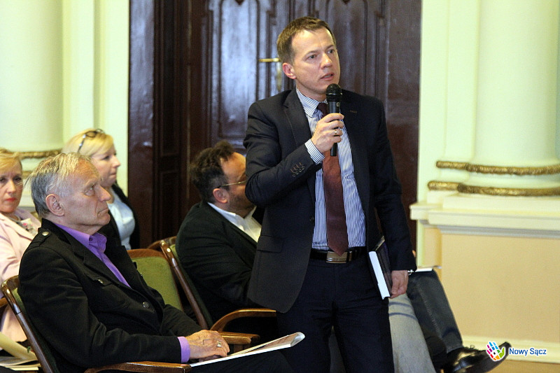- Witam Państwa w imieniu gospodarza tego miejsca prezydenta Ryszarda Nowaka i dziękuję Panu prezesowi Zygmuntowi Berdychowskiemu za to, że obrał właśnie za miejsce dzisiejszego spotkania salę ratuszową, miejsce gdzie powstawała historia Sądecczyzny - mówił Zastępca Prezydenta Nowego Sącza Wojciech Piech witając uczestników spotkania. Wyraził też przekonanie, że budowanie tożsamości historycznej poprzez takie inicjatywy wpływa na poczucie naszej dumy z regionu i dumy z naszego miasta.