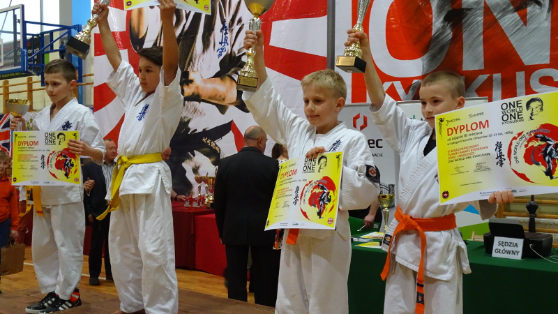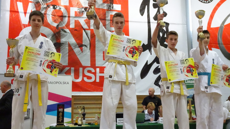 W konkurencjach KUMITE (walka sportowa) drugie miejsce w kat. juniorów-60kg wywalczył Szymon Jaskułka,który po czterech zwycięskich walkach dopiero w finale uległ zawodnikowi z Koszalina przez wskazanie sędziów. Szymon to prawdziwy wojownik, swymi mocnymi walkami wzbudził uznanie wśród licznie zgromadzonej publiczności. W kumite młodzików Kamil Kaleta brązowy medalista Mistrzostw Makroregionu Południowego, po dwóch wcześniej zdecydowanie wygranych walkach spotkał się w finale z czołowym zawodnikiem z Białorusi. Białorusin, który w półfinale pokonał po zaciętej walce Klemensa Ogórka brązowego medalistę ostatnich Mistrzostw Europy w finale również zwyciężył Kamila Kaletę. Trzecie miejsca w kumite w swoich kategoriach wywalczyli: Szymon Ogórek, Mateusz Zarotyński i Tomasz Janczyk.Wszyscy zawodnicy zaprezentowali się bardzo dobrze, szczególnie liczyłem na Nikodema Święsa, który również trafił na zawodnika z Białorusi, którego nie udało mu się pokonać. Cała reprezentacja Klubu dobrze zaprezentowała się na tak dużej międzynarodowej imprezie karate i wszystkim gratuluję skutecznego promowania Miasta Nowy Sącz.