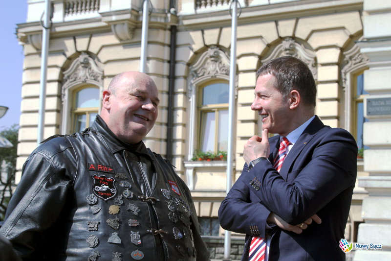 Następnie, po przyjeździe na płytę nowosądeckiego Rynku motocykliści spotkali się z wiceprezydentem Wojciechem Piechem, który pogratulował im podjęcia tak zaszczytnej idei i życzył szczęśliwego przejazdu i powrotu do domu - Cieszy mnie oraz Pana Prezydenta to, że wyjeżdżacie z pewną ideą, nie tylko po to, aby poszukać własnej satysfakcji, choć tę na pewno znajdziecie, ale jedziecie po to, aby pomóc, pomóc tym, którzy są w potrzebie i którzy chcą przyjechać na Światowe Dni Młodzieży i dzięki waszej pomocy ktoś tutaj na pewno przyjedzie. Jedzcie szczęśliwie, a potem wracajcie do nas, będziemy na was czekać.