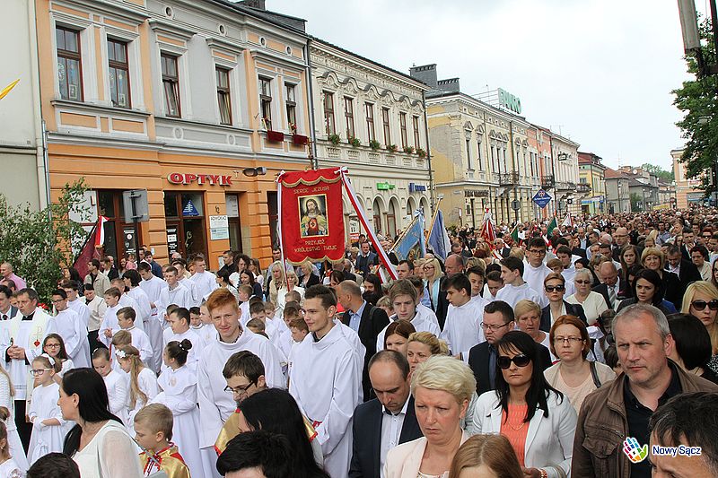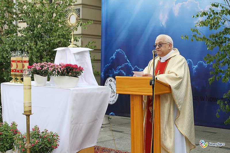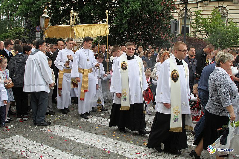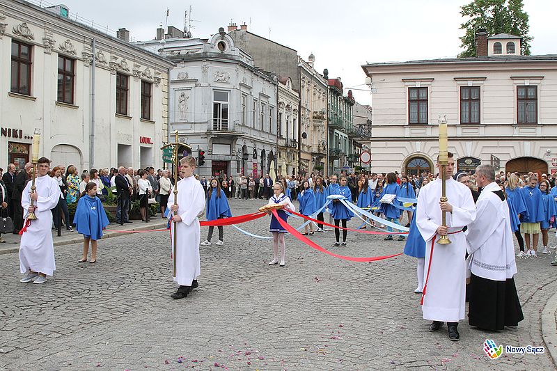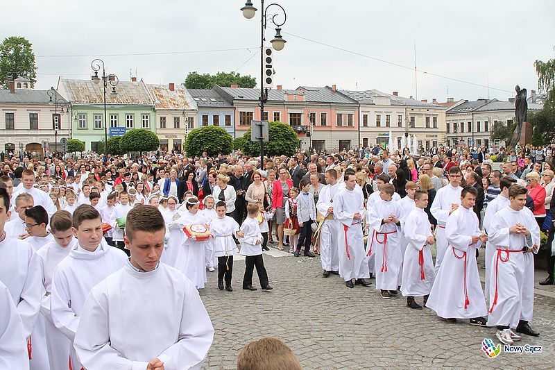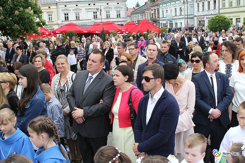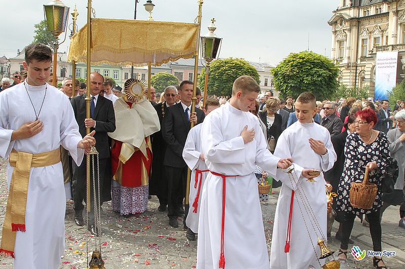 Kilka tysięcy Sądeczan wzięło udział w uroczystościach Bożego Ciała, które rozpoczęły się Mszą Świętą w Bazylice św. Małgorzaty. Eucharystię celebrowali Prepozyt Kapituły Kolegiackiej ks. dr Jerzy Jurkiewicz, Proboszcz Parafii św. Kazimierza ks. dr Jan Siedlarz i Proboszcz Parafii Ducha Świętego o. Józef Polak SJ. Władze miasta reprezentowali Zastępca Prezydenta Nowego Sącza Wojciech Piech, a także Wiceprzewodniczący Rady Miasta Tomasz Cisoń i Michał Kądziołka.