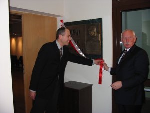 Na zdjęciu: Aktu odsłonięcia pamiątkowej tablicy – dzieła artysty Zbigniewa Tohla - dokonali: prezydent miasta Józef Antoni Wiktor i syn aktorki – Piotr Hanuszkiewicz.
