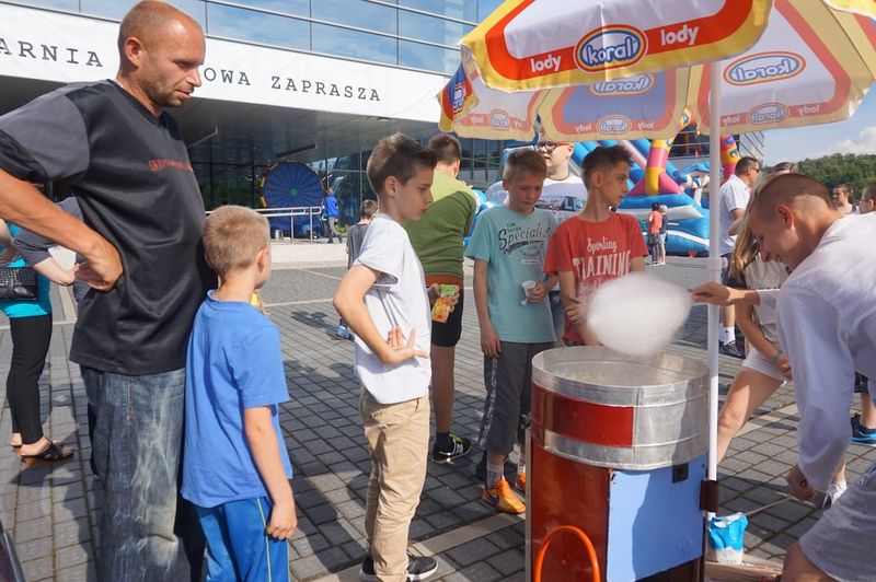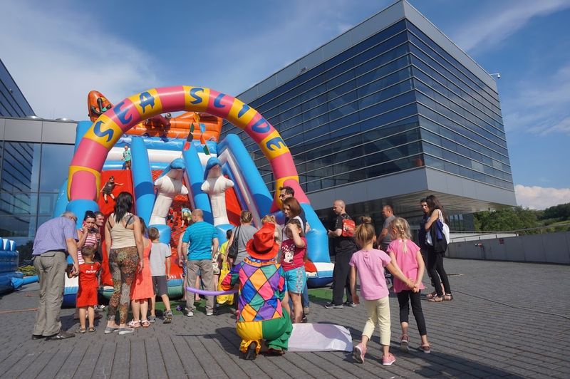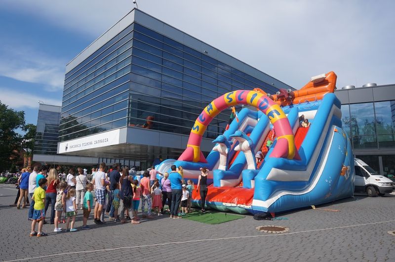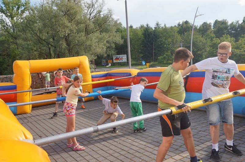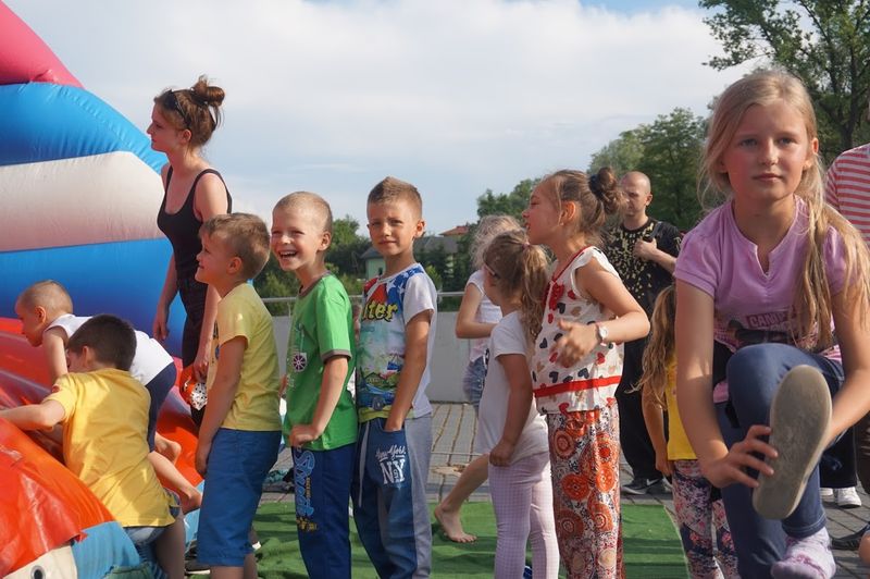 Niedzielne popołudnie z mnóstwem atrakcji ściągnęło dziesiątki rodzin z osiedla i nie tylko. Olbrzymia zjeżdżalnia z delfinami, fantastyczny dmuchany tor przeszkód, "stadion" do gry w piłkę nożną – żywe piłkarzyki w 5-osobowych drużynach stały się największą i najnowszą atrakcją dla młodzieży i dzieci.