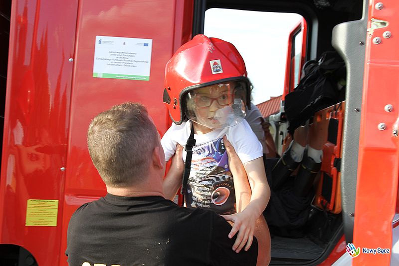 Na terenie Miasteczka Rowerowego nie mogło też zabraknąć strażaków, którzy dzieciom i ich rodzicom prezentowali profesjonalny sprzęt wykorzystywany do ratowania ludzkiego życia. Każdy mógł przymierzyć również prawdziwy strażacki chełm. Jednocześnie z myślą o kierowcach Małopolski Ośrodek Ruchu Drogowego w Nowym Sączu przygotował symulator zderzeń, który uświadamiał wszystkich użytkowników samochodów jak ważne dla naszego zdrowia i życia jest zapinanie pasów bezpieczeństwa.
