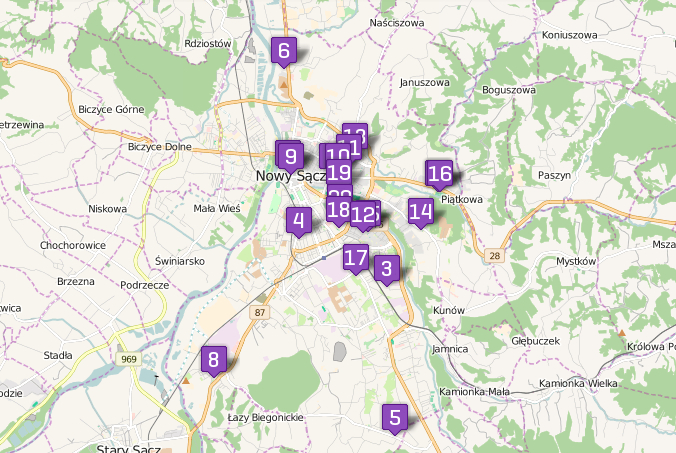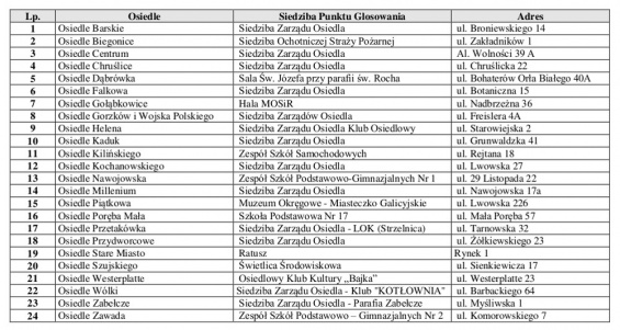 Wykaz przenośnych punktów do głosowania na osiedlach Miasta Nowego Sącza: