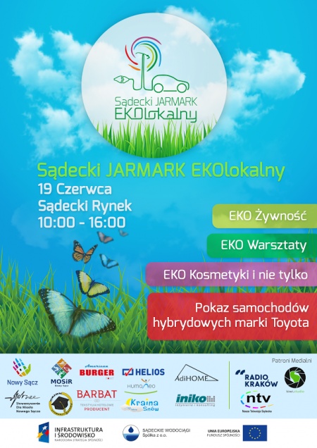 Kolejna odsłona Sądeckiego JARMARKU EKOlokalnego zbliża się wielkimi krokami. Już 19 czerwca po raz czwarty na nowosądeckim Rynku zaprezentuje się około 40 wystawców, w tym producentów EKOŻywności, EKOKosmetyków i nie tylko. Wśród zaplanowanych atrakcji przewidziano także EKO Warsztaty i pokaz samochodów hybrydowy marki Toyota. Sądecki JARMARK Ekolokalny rozpocznie się o godzinie 10:00.