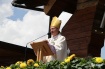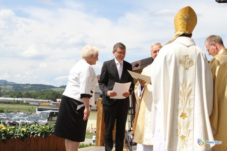 Burmistrz Lelek przypomniał słowa Św. Jana Pawła II i wyraził wdzięczność starosądeczan za oficjalne ustanowienie przez Stolicę Apostolską Św. Kingi patronką Starego Sącza - Poprzez rodzinę toczą się dzieje człowieka, dzieje zbawienia ludzkości. Rodzina znajduje się pośrodku tego wielkiego zmagania pomiędzy dobrem a złem, między życiem a śmiercią, między miłością a wszystkim, co jest jej przeciwieństwem. Te słowa z Listu do Rodzin przypomniał nam w tym miejscu Ojciec Święty Jan Paweł II. Pragnę w imieniu zgromadzonych u stóp Ołtarza Papieskiego rodzin z Diecezji Tarnowskiej podziękować, że nie jesteśmy pozostawieni sami sobie, że mamy oparcie w Kościele. Dziękuję za modlitwę, dar eucharystii i codzienną troskę o rodzinę. Stary Sącz ma dzisiaj szczególne szczęście. Otrzymaliśmy dekret Stolicy Apostolskiej, który na prośbę Rady Miejskiej i społeczności Starego Sącza potwierdził to czego od wieków doświadczają mieszkańcy, że Św. Kinga jest patronką tego miejsca. To dla nas wielki dar, przywilej, zaszczyt i radość.