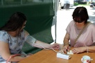 Podopieczni ŚDS z dumą prezentują wspomniane wyroby i na oczach widzów tworzą kolejne. - Robimy takie naczynie, które się nie stłucze – pokazuje swoje dzieło jedna z osób na stoisku. - Najpierw je wytłaczamy, a potem wyścielamy sznurkiem - dodaje. Inna osoba zajmuje się haftem. - Ale są i prace plastyczne – zastrzega od razu.
