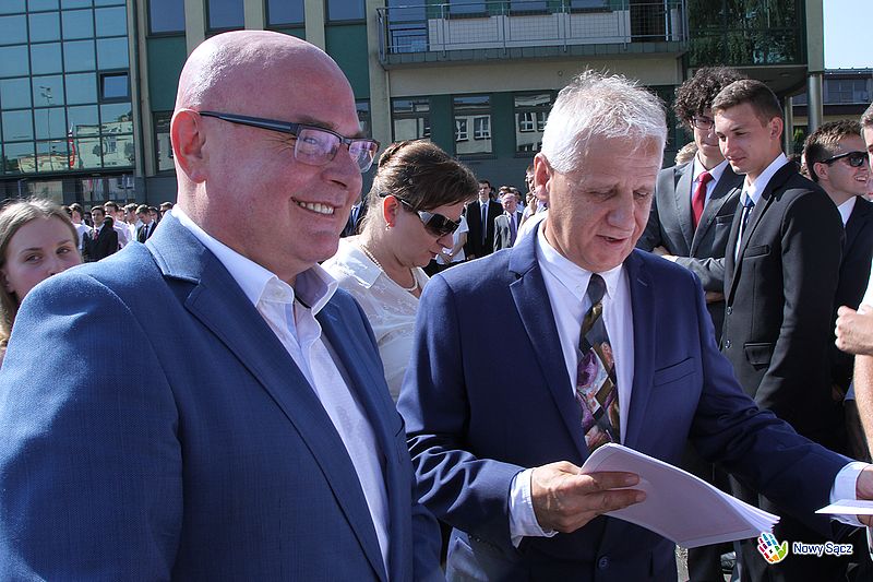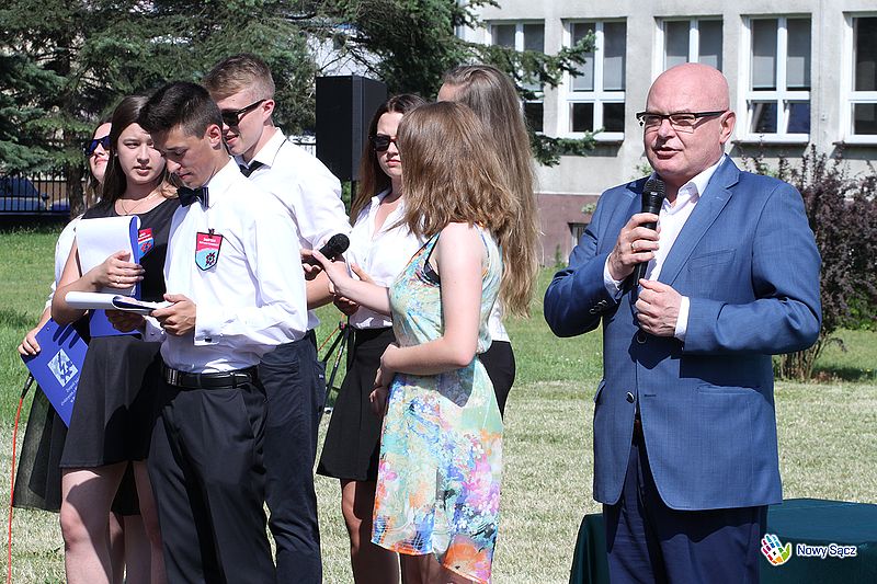 Prezydent Nowego Sącza Ryszard Nowak wziął dzisiaj udział w zakończeniu roku szkolnego w Zespole Szkół Elektryczno-Mechanicznych. Podczas uroczystego apelu przekazał uczniom i kadrze pedagogicznej gratulacje za wysokie wyniki osiągane w roku szkolnym 2015/2016. - Jestem bardzo dumny z osiągnięć szkoły, z waszych drodzy uczniowie osiągnięć, i chcę wam za to wszystko serdecznie podziękować - mówił prezydent Nowak. - Jesteście dumą Nowego Sącza, dumą Sądecczyzny i dajecie tego dowód już po raz kolejny. Wierzę, że tak też będzie w następnych latach. Zasługujecie na jeszcze większą ofiarność miasta, dlatego będę się starał o to, abyście byli zadowoleni z tego, że jesteście w tej szkole.