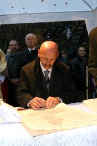 Akt – przy wykonanej przez orkiestrę i chóry "Glorii" Vivaldiego - podpisali: ks. biskup Stanisław Budzik, prezydent miasta Nowego Sącza Józef Antoni Wiktor, przewodniczący Rady Miasta Jacek Chronowski, prepozyt Bazyliki Kolegiackiej św. Małgorzaty ks. dr prałat Waldemar Durda, panowie darczyńcy – Józef i Marian Koralowie.