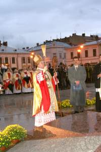 Ceremonię na Rynku poprzedziła uroczysta msza św. w Bazylice Kolegiackiej św.Małgorzaty odprawiona przez ks. biskupa dr. Stanisława Budzika w asyście proboszczów sądeckich parafii. Msza miała bogatą oprawę muzyczną, zaczęła się odśpiewaniem "Bogurodzicy". W darze ołtarza prezydent Józef Antoni Wiktor i przewodniczący RM Jacek Chronowski wręczyli JE ks. biskupowi Stanisławowi Budzikowi ikonę pt. "Zwiastowanie" Marii Ritter, wybitnej sądeckiej malarki.