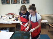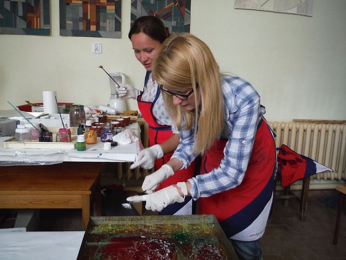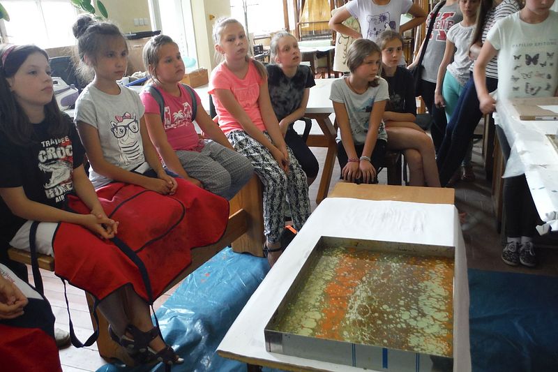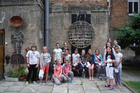 - Dzieci obcowały oko w oko ze sztuką i mogły tworzyć w pracowniach plastycznych tamtejszego Liceum Plastycznego – mówi Anna Skierska. Pierwszy dzień pobytu upłynął na warsztatach malowania na tkaninie oraz na wodzie, czyli marblingu. - W pracowni wypełnionej krosnami i gobelinami, miejscowi artyści plastycy Ewa i Władysław Dominiak w sposób niezwykle interesujący opowiadali o sztuce i technikach właściwych dla tkaniny. Owocem tego spotkania i wspólnej pracy były jedyne w swoim rodzaju podkoszulki – wspominają organizatorki wyjazdu.