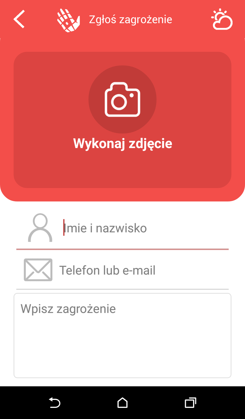 Aplikacja została tak zaprojektowana, aby działała w dwóch trybach, zarówno on-line jak i off-line (do pierwszego uruchomienia niezbędne jest połączenie on-line). Ponadto została wyposażona w kilka przydatnych funkcji, które będą na co dzień użyteczne dla każdego posiadacza, są to między m.in. 7 dniowa pogoda, możliwość wykonania telefonów alarmowych bezpośrednio z poziomu aplikacji oraz zgłoszenie zagrożenia do odpowiednich służb.