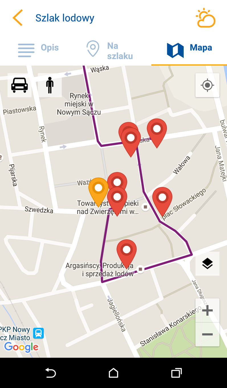 1. Szlaki tematyczne - to zakładka przygotowana przede wszystkim z myślą o tych, którzy chcieliby w ciekawy sposób zwiedzić miasto Nowy Sącz i zapoznać się z jego historią. Tryb lokalizacji „Pieszo” lub „Samochodem” ułatwia celne dotarcie do konkretnego miejsca.