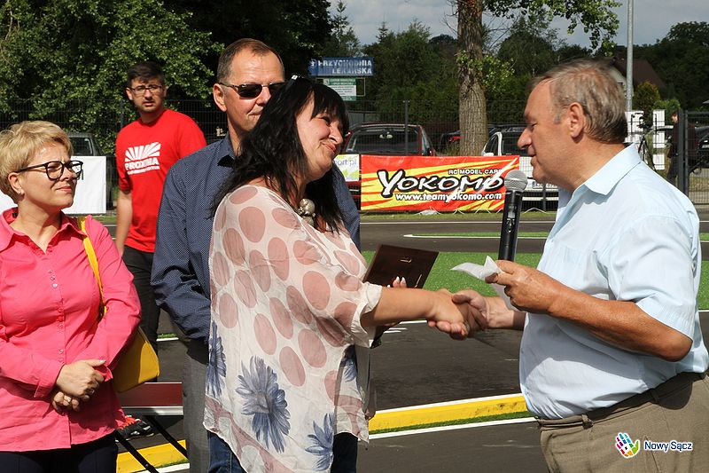 Wiceprezes Sądeckiego Klubu Modelarskiego "Felga" Piotr Jeż witając wszystkich zawodników i zaproszonych na inaugurację działalności toru gości, w sposób szczególny podziękował - wręczając pamiątkową statuetkę - prezydentowi Ryszardowi Nowakowi za wsparcie inicjatywy budowy jednego z największych tego typu obiektów w Polsce, a także doprowadzenie inwestycji do udanego finału. Piotr Jeż wręczył również podziękowania między innymi dla pełnomocnika prezydenta ds. inwestycyjnych Grzegorza Dobosza, dyrektora Miejskiego Ośrodka Sportu i Rekreacji Pawła Badury, dyrektora Wydziału Kultury Sportu Komunikacji Społecznej i Promocji Józefa Kantora, reprezentującego firmę Wiśniowski dyrektora Tadeusza Wiśniowskiego, wicedyrektora Małopolskiego Ośrodka Ruchu Drogowego w Nowym Sączu Wiesława Kądziołki, a także radnego dzielnicy Zawada Andrzeja Bodzionego.